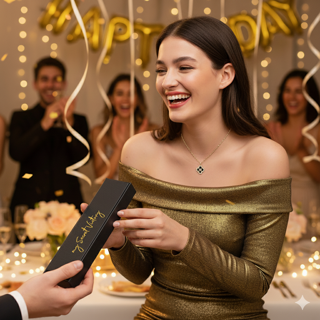 Four Leaf Clover Pendant Necklace for Women 18K Gold Plated with Black Agate & Cubic Zirconia / Dainty Lucky Clover Necklace Perfect for Any Occasion